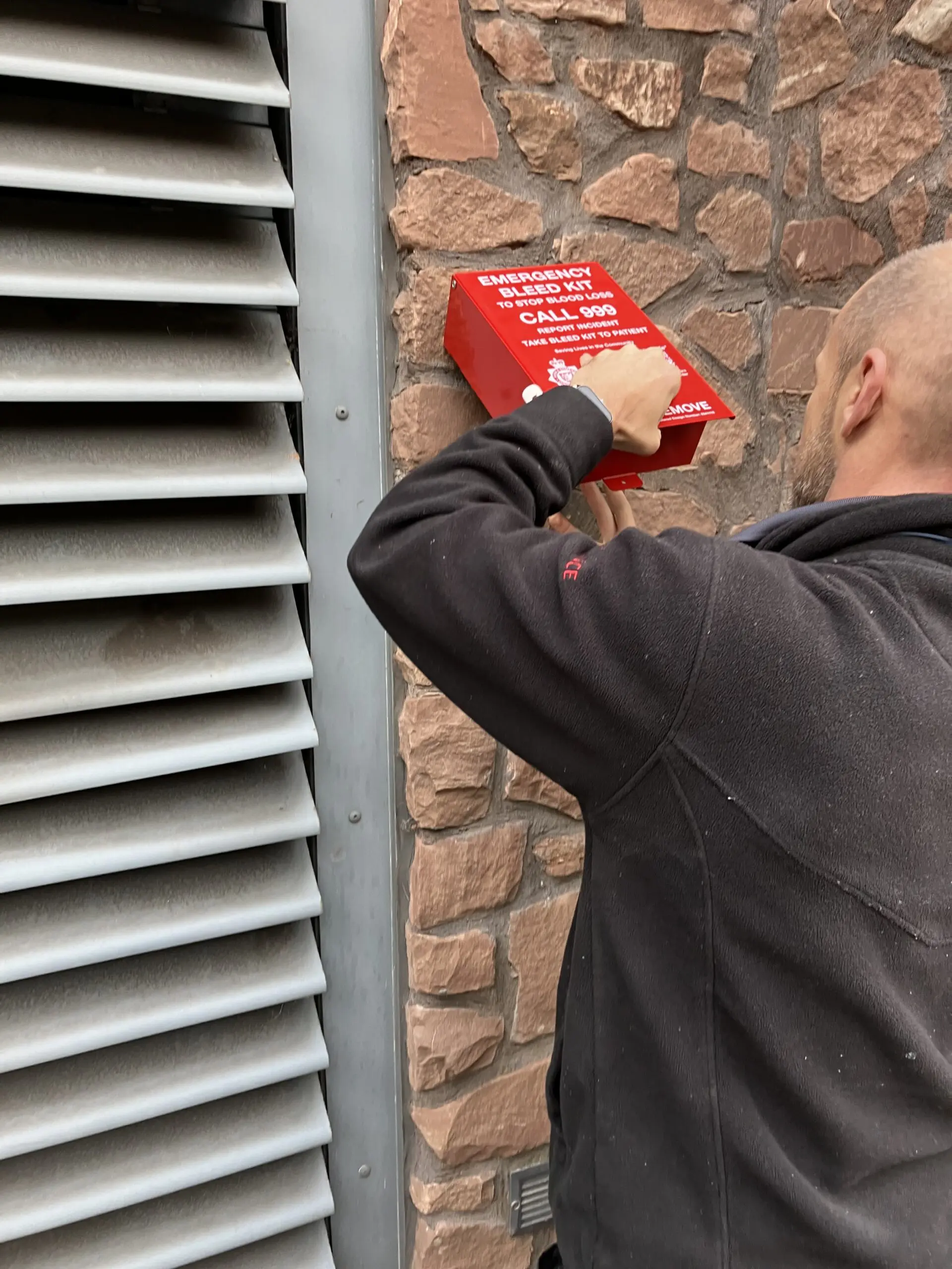 Your kit is registered on the national bleed kit locator map, so emergency services can direct the public straight to it.